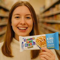 12 PACK General Mills Cinnamon Toast Crunch Chocolate Bars (2.1Oz) transform your favorite breakfast cereal into a sweet, crunchy snack bar. Each bar combines crispy Cinnamon Toast Crunch pieces with creamy milk chocolate for an irresistible treat that satisfies your craving for cinnamon sugar goodness anytime, anywhere.