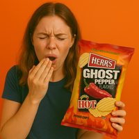 Turn up the heat with this 12-pack of Herr's Ghost Pepper flavored snacks! Each bite delivers a fiery kick that’s perfect for spice lovers looking to challenge their taste buds. Share with friends or keep them all to yourself—either way, these bold snacks bring a thrilling burst of flavor to your snack time. Ready, set, spice!
