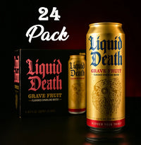 Quench your thirst with Liquid Death Grave Fruit 24 Pack Drink. This refreshing beverage is deadly delicious, with 24 cans of fruity goodness. Say goodbye to boring drinks and hello to a killer taste. Death never tasted so good!