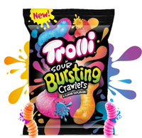 Get ready to have your taste buds burst with flavor with Trolli Sour Bursting Crawlers! These gummy worms are not your average candy - they're packed with a sour punch that will have you begging for more. Perfect for satisfying your sweet (and sour) cravings, these crawlers are sure to bring a burst of fun to any snack time.